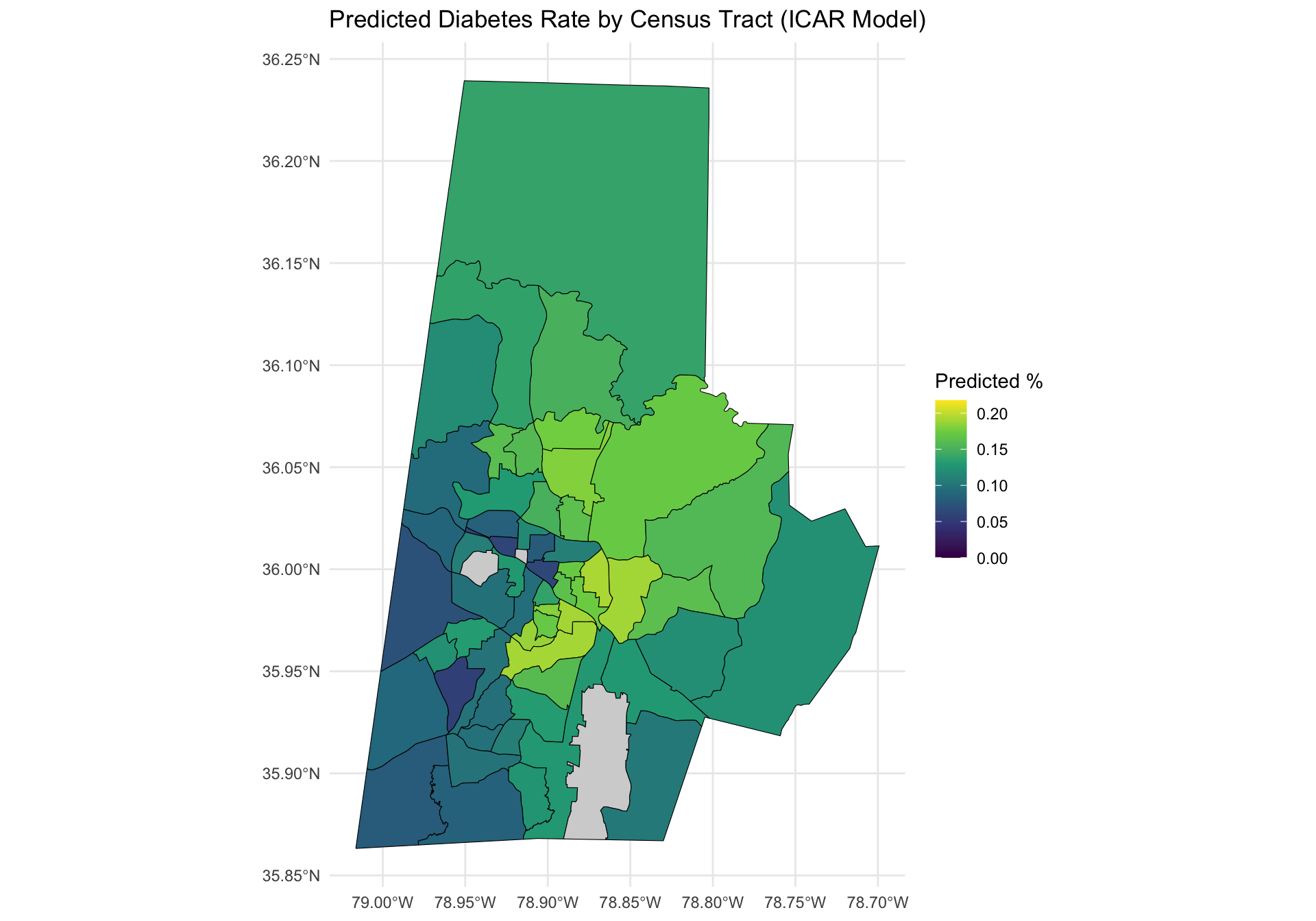 title = "Predicted Diabetes Rate by Census Tract (ICAR Model)",