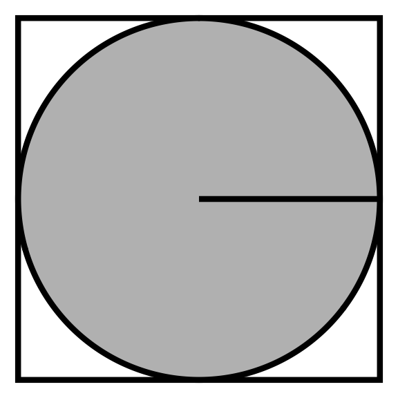 The ratio of the two areas is: \(\frac{A_c}{A_s} = \frac{\pi r^2}{4 r^2} \implies \pi = \frac{4 A_c}{A_s}\)