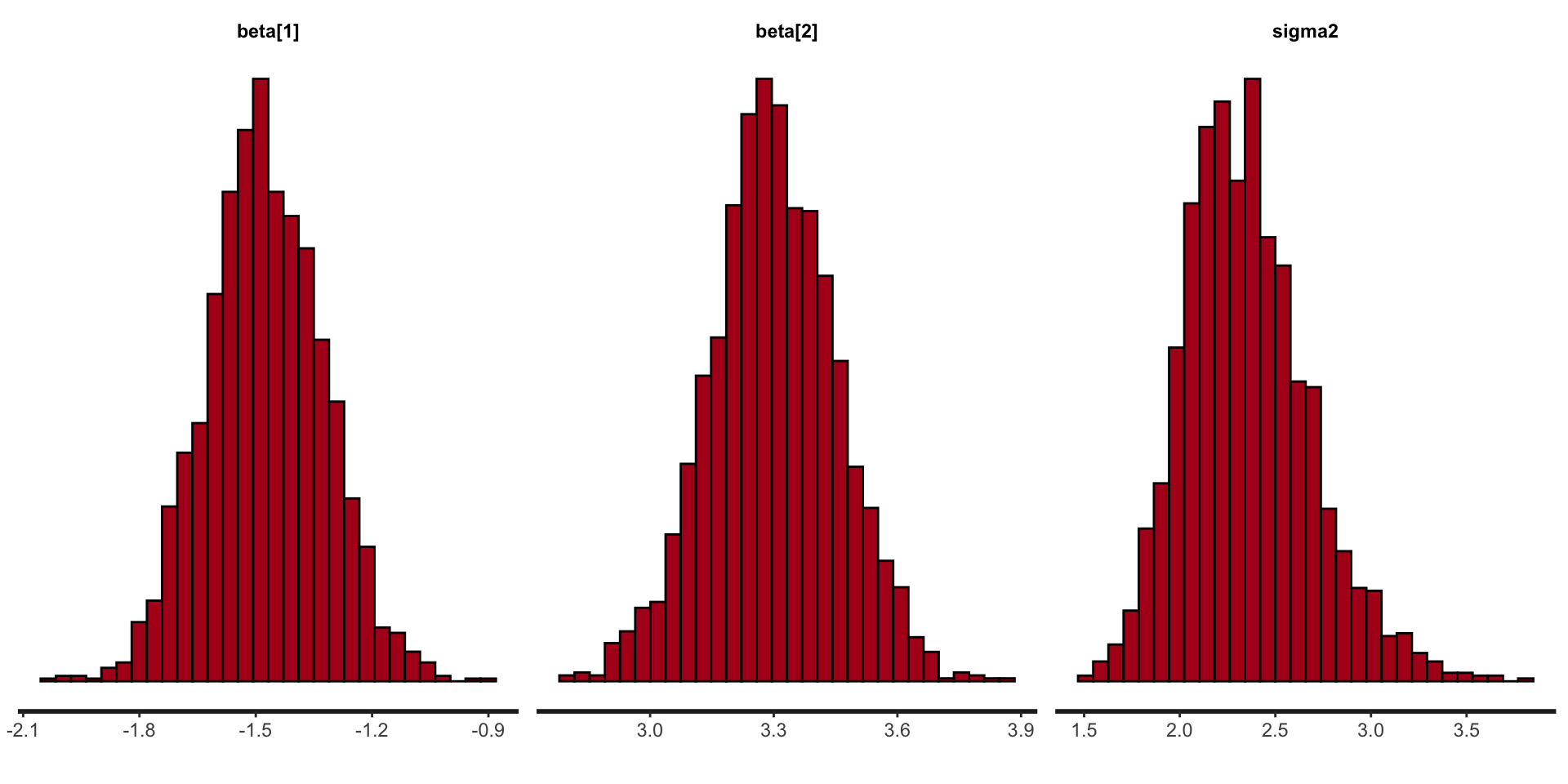 beta[2] 3.30 0.00 0.15 3.20 3.30 3.40 1674 1