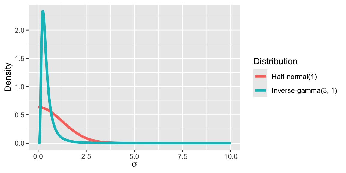 The half-normal is a useful prior for nonnegative parameters that should not be too large and may be very close to zero.
