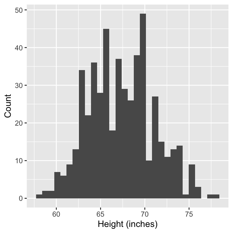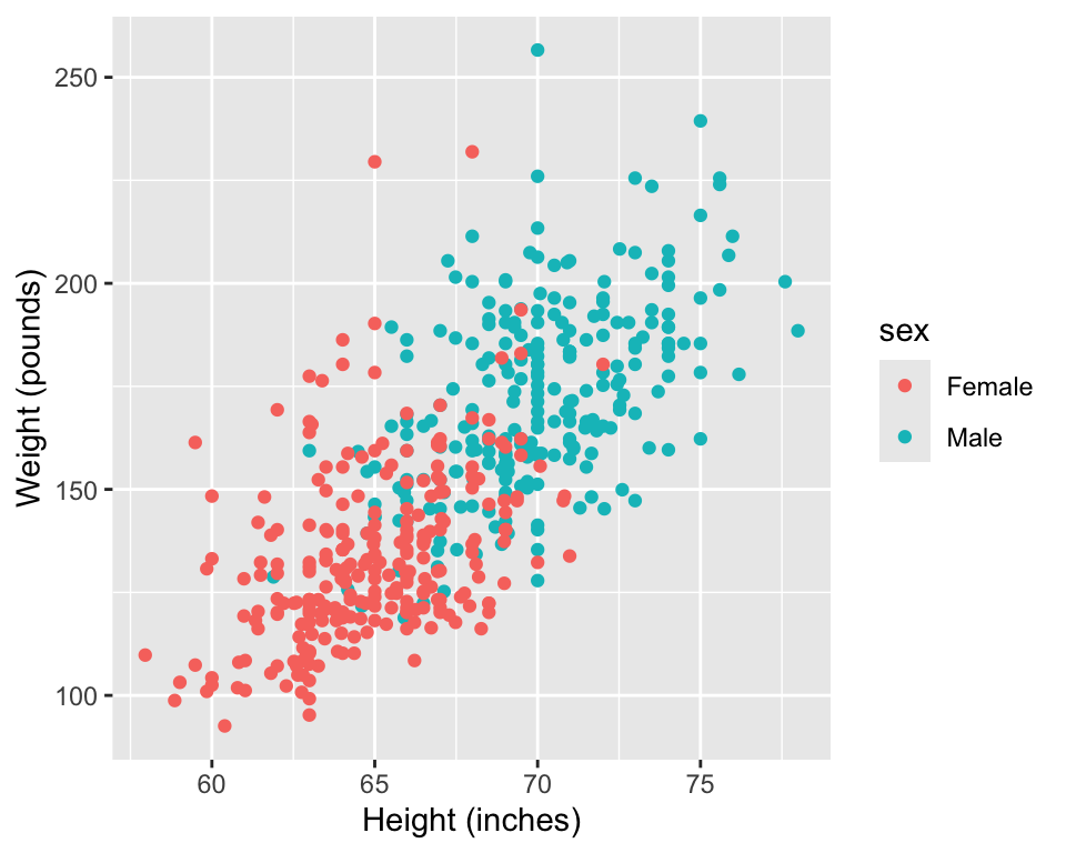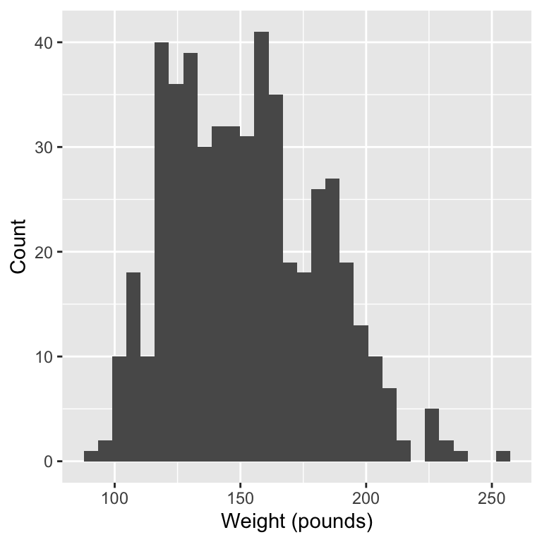Research question: We would like to understand the relationship between a person’s height and weight. A few particular questions we have are: