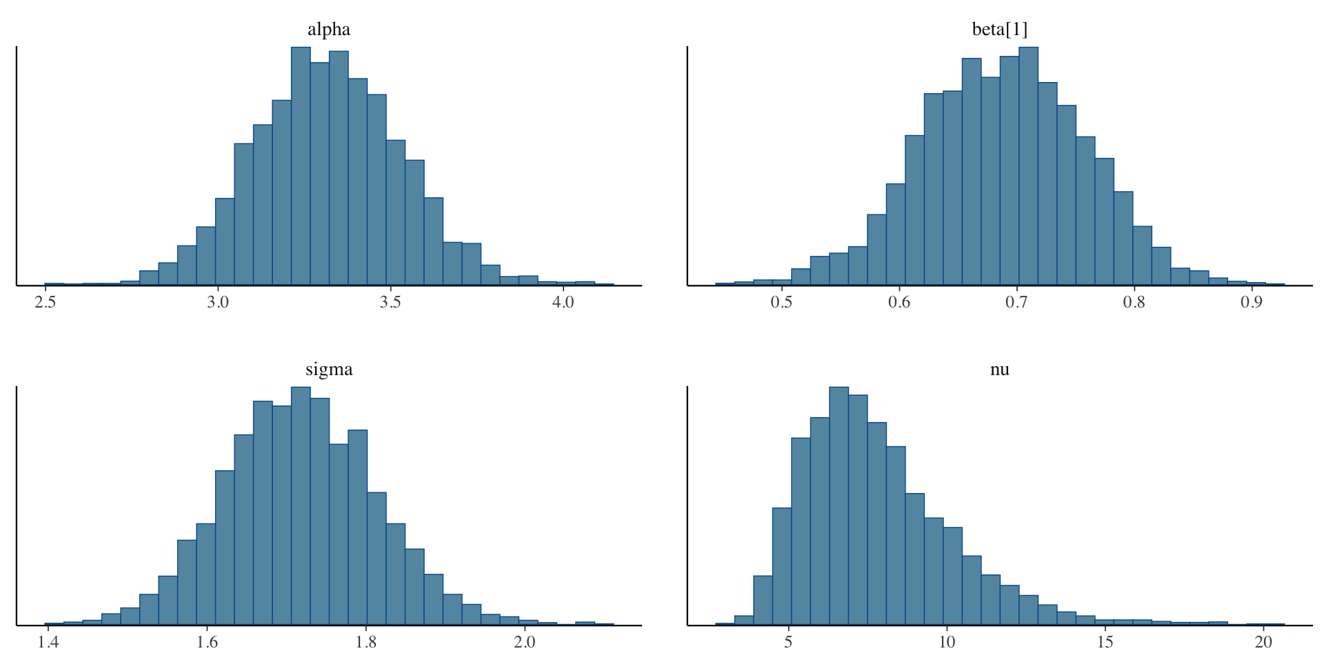 4 chains, each with iter=2000; warmup=1000; thin=1;