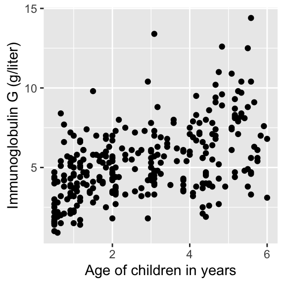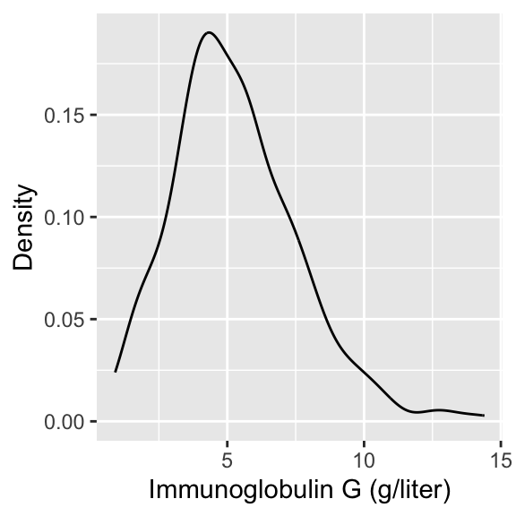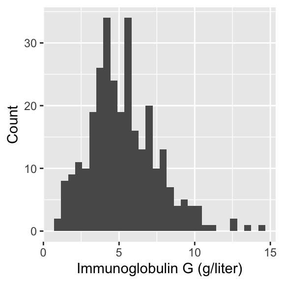 In today’s lecture, we will look at data on serum concentration (grams per litre) of immunoglobulin-G (IgG) in 298 children aged from 6 months to 6 years.
