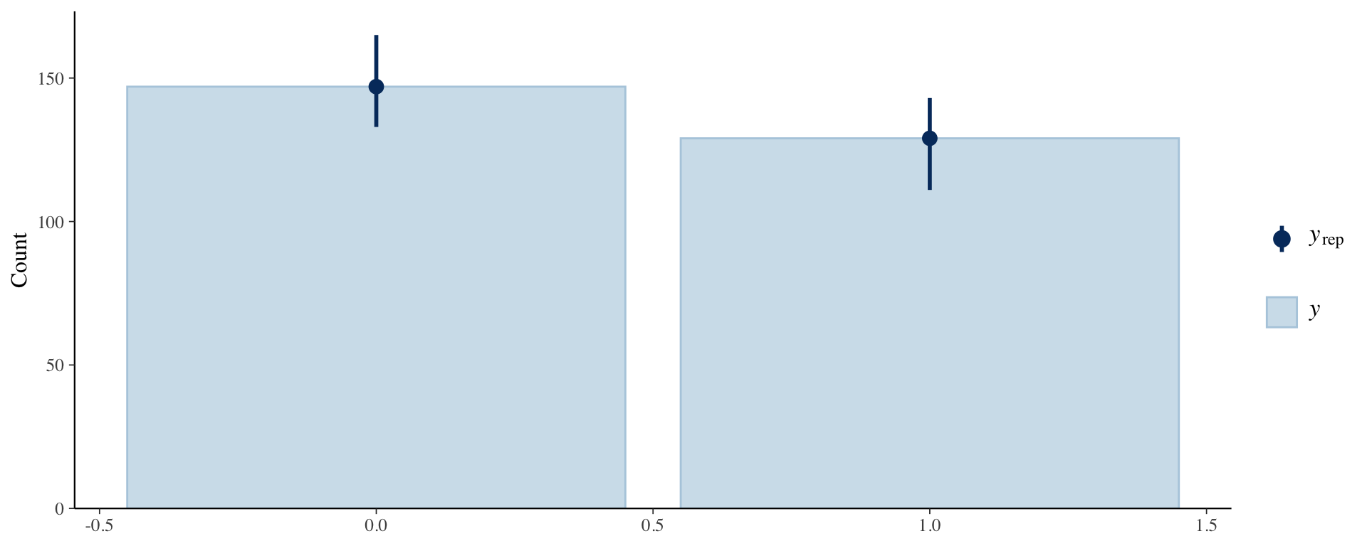 ppc_bars(stan_data$Y, y_pred[1:100, ])