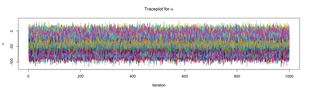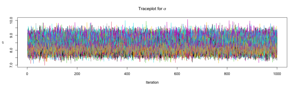 4 chains, each with iter=2000; warmup=1000; thin=1;