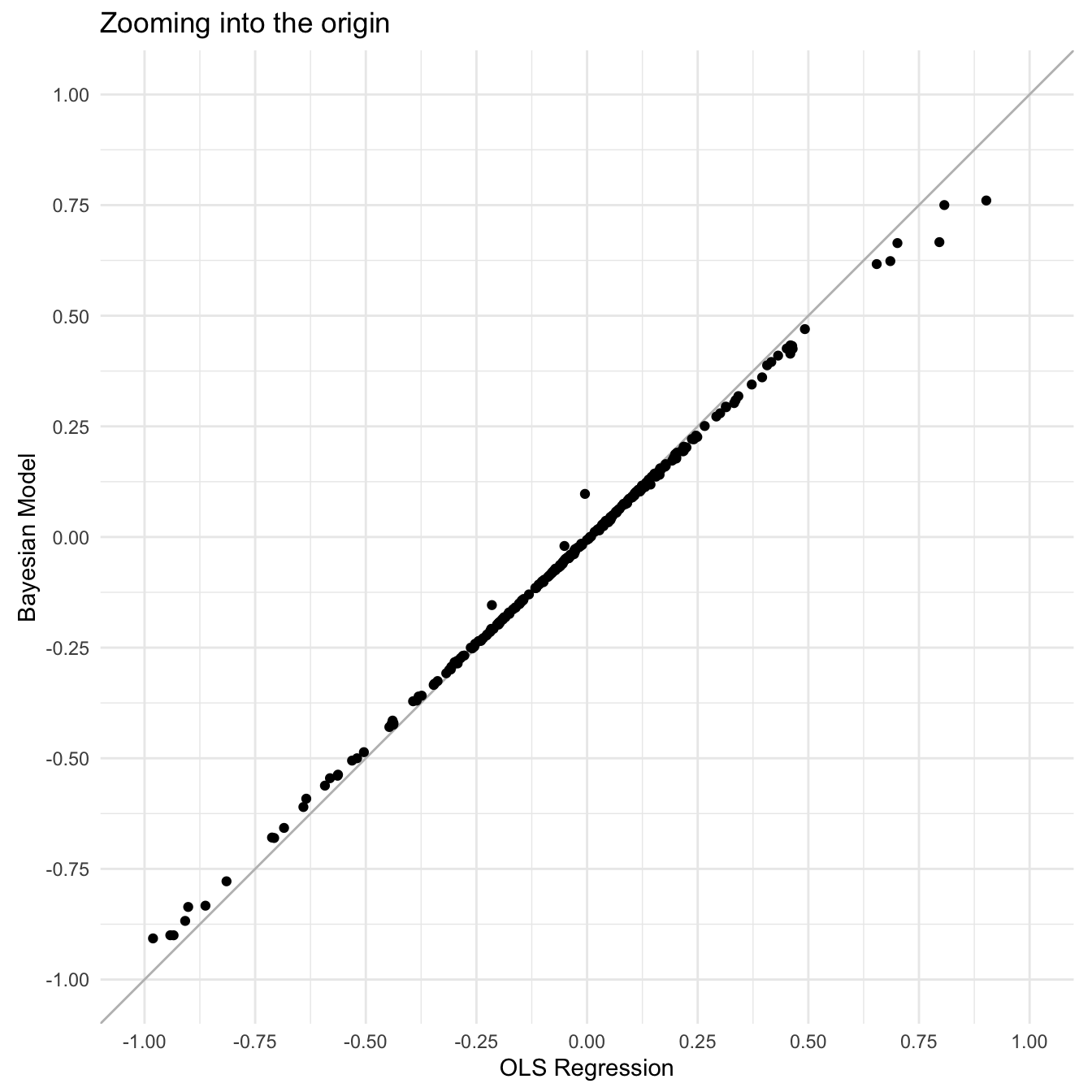 However, this can lead to eye-specific intercepts and slopes that are not realistic (consider OLS regression with very few data points).