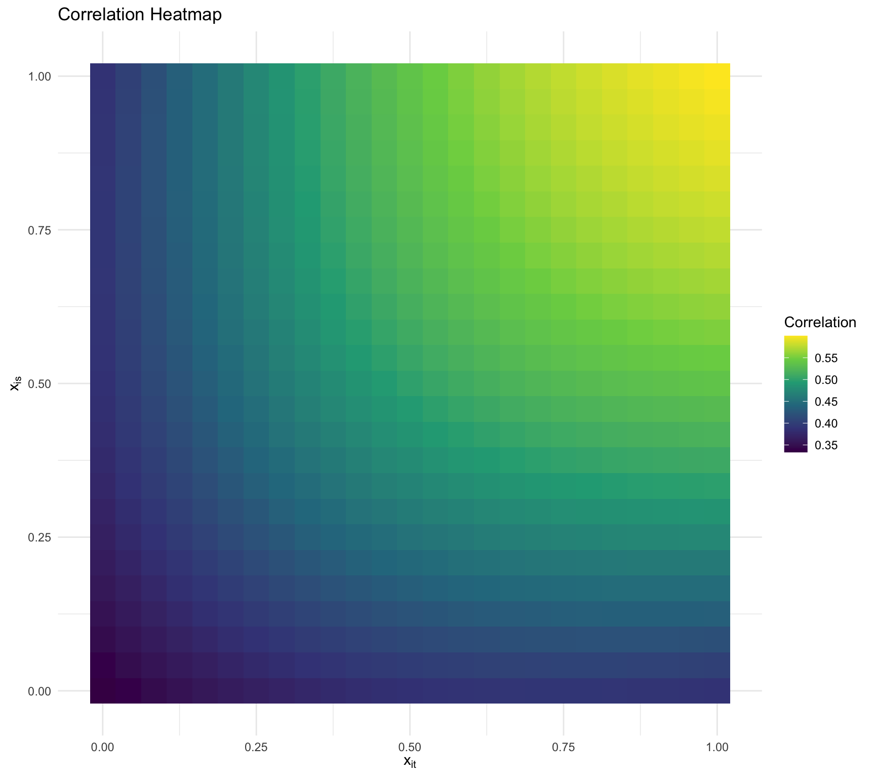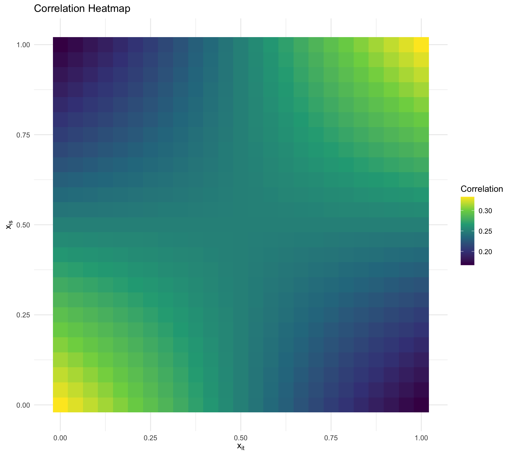 Suppose that \(\mathbf{x}_{it} = \mathbf{z}_{it} = (1, X_{it})\) , such that \(p = q = 2\) . Then,
