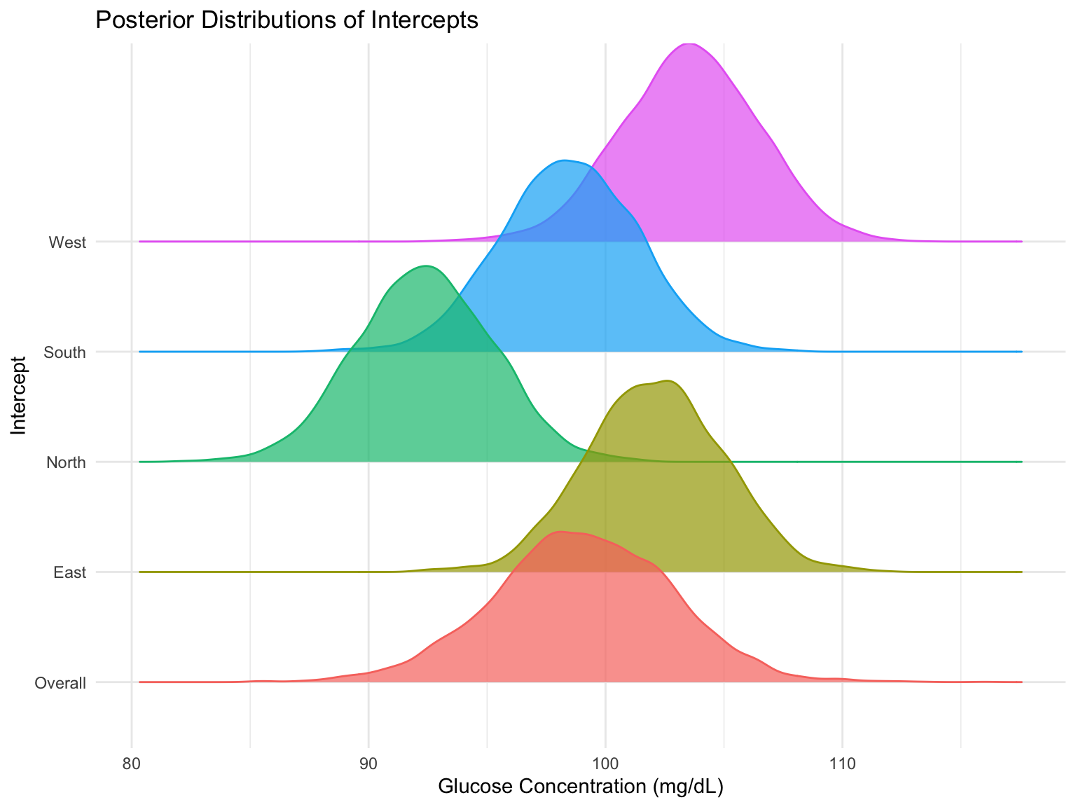 print(fit_conditional, pars = c("Intercept_East", "Intercept_South", "Intercept_North", "Intercept_West"), probs = c(0.025, 0.975))