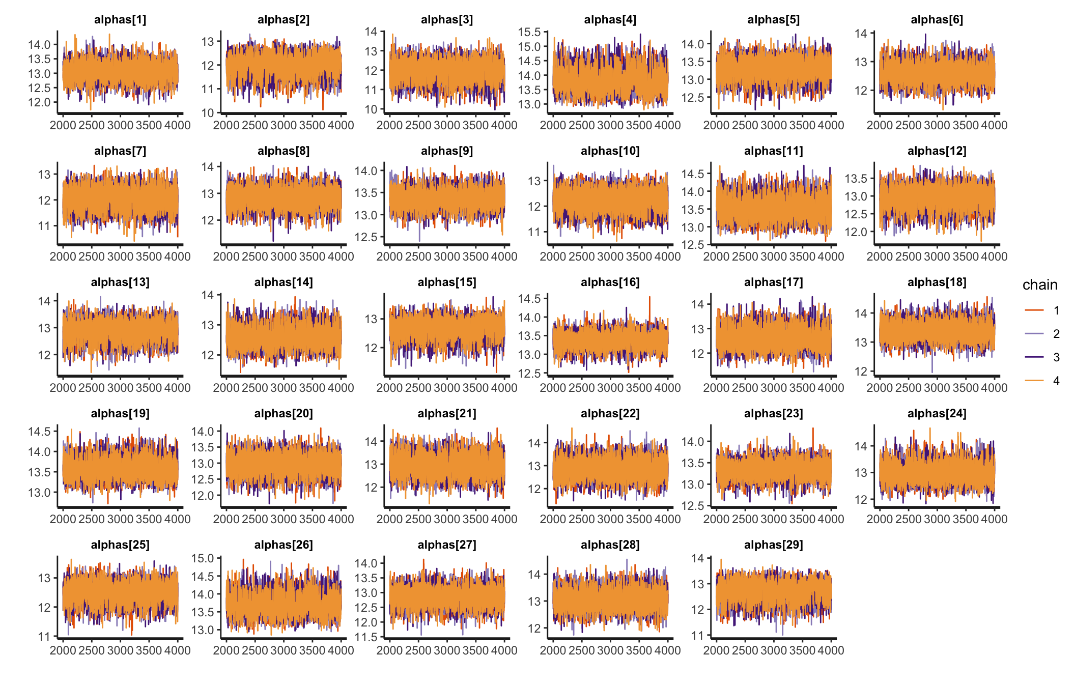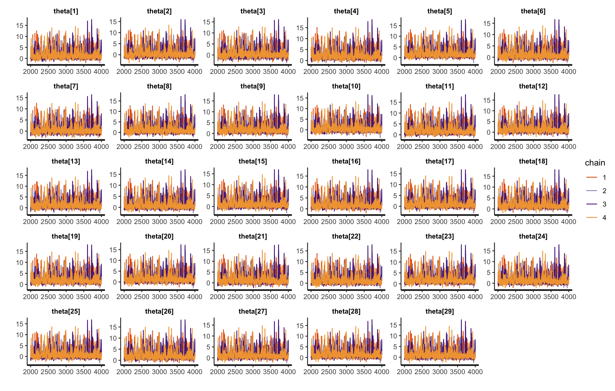4 chains, each with iter=4000; warmup=2000; thin=1;